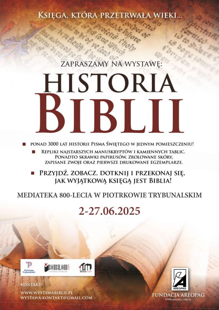 Zapraszamy na niezwykłą podróż przez 3500 lat historii słowa Bożego – od kamiennych tablic i zwojów z Qumran, przez grecką Septuagintę i łacińską Wulgatę, aż po Biblię Gutenberga, Erazma z Rotterdamu, Lutra oraz słowiańskie tłumaczenia, takie jak Biblia Ostrogska czy Biblia królowej Zofii.
