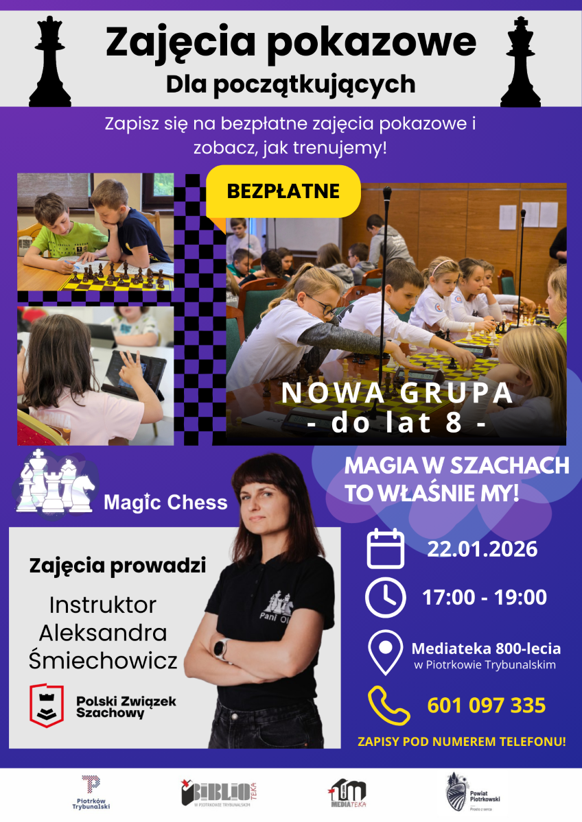 W czwartek, 22 stycznia, ponownie odbędą się zajęcia pokazowe z nauki gry w szachy, organizowane przez Magic Chess – dla dzieci do 8 lat.
