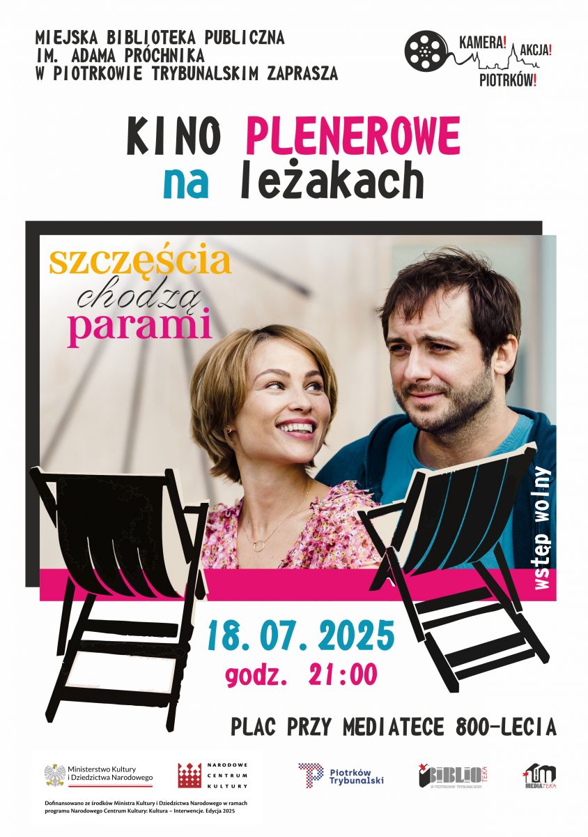 18 lipca 2025 r. o godzinie 21:00 na placu przy Mediatece 800-lecia będzie można obejrzeć komedię romantyczną „Szczęścia chodzą parami”. Wygodne leżaki, wakacyjna atmosfera i dobry film to idealne połączenie na letni wieczór!
