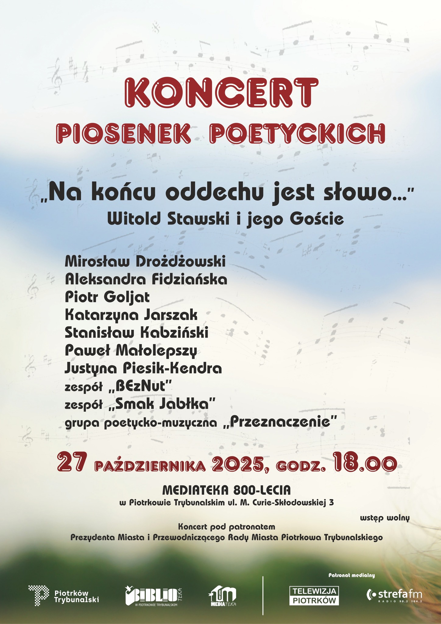Zapraszamy na wyjątkowy wieczór z muzyką i poezją, organizowany z okazji przyznania Tytułu Honorowego Obywatela Miasta Piotrkowa Trybunalskiego Witoldowi Stawskiemu.
