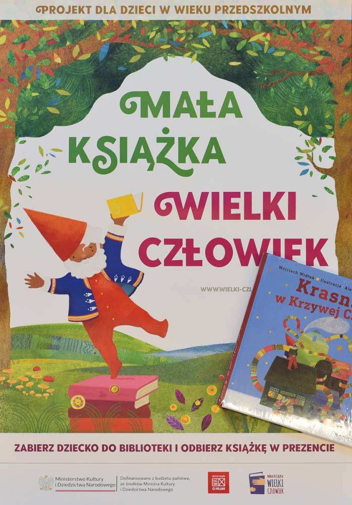 Już po raz kolejny nasza biblioteka uczestniczy w kampanii społecznej „Mała książka – wielki człowiek”. Każdy przedszkolak, który do nas przyjdzie, otrzyma w prezencie Wyprawkę Czytelniczą, a w niej: książkę „Krasnal w Krzywej Czapce” oraz Kartę Małego Czytelnika. Za każdą wizytę w bibliotece, zakończoną wypożyczeniem minimum jednej książki z księgozbioru dziecięcego, Mały Czytelnik otrzyma naklejkę, a po zebraniu dziesięciu zostanie uhonorowany imiennym dyplomem potwierdzającym jego czytelnicze zainteresowania. Akcja ma za zadanie przypominać o zaletach wspólnego, rodzinnego czytania. A tych jest bez liku! Szczegóły kampanii na stronie wielki-czlowiek.pl