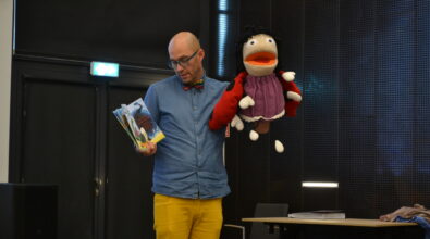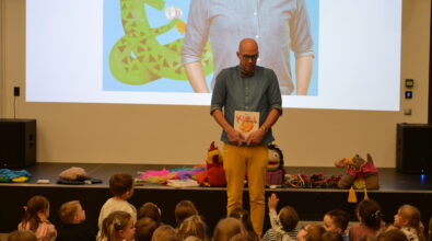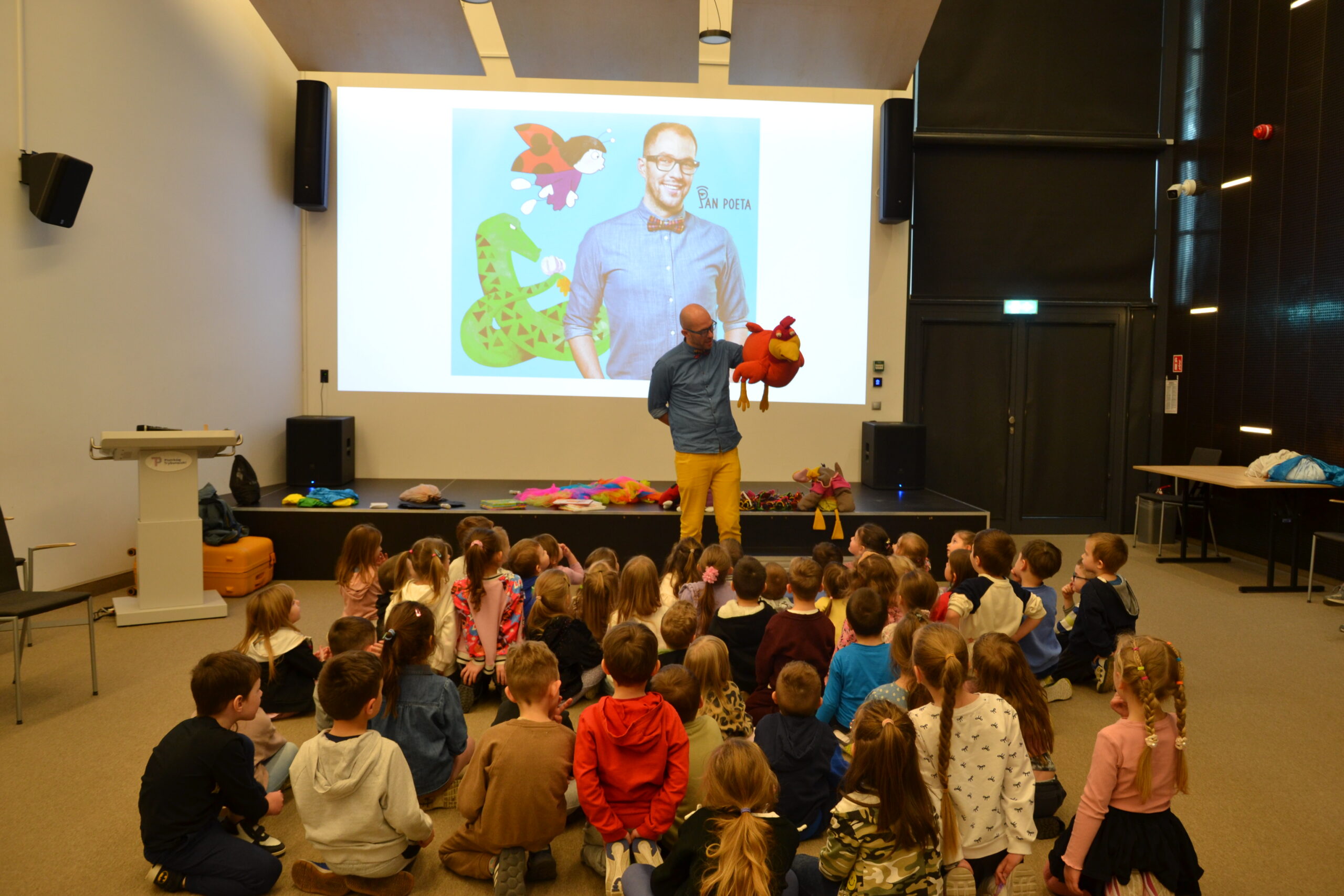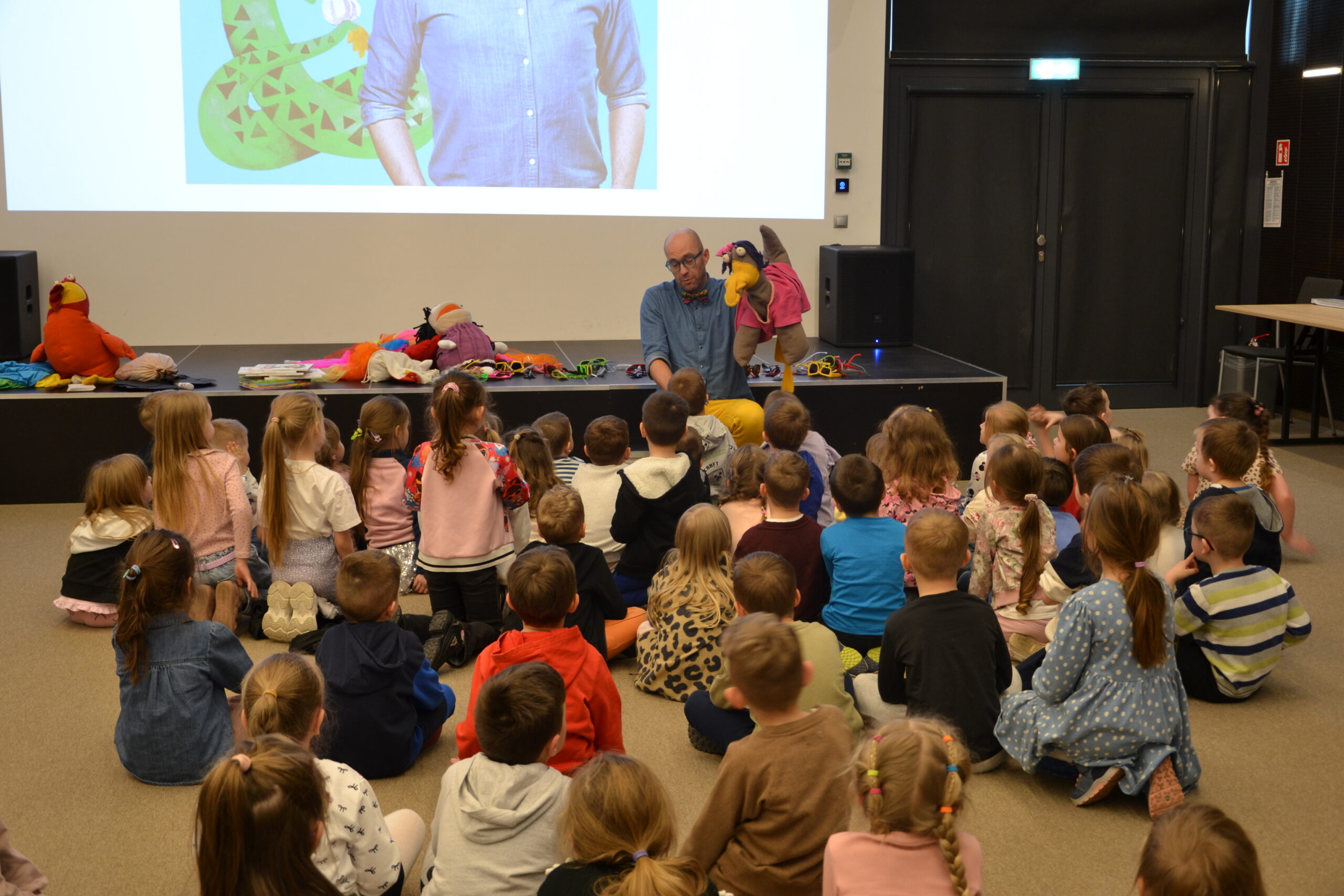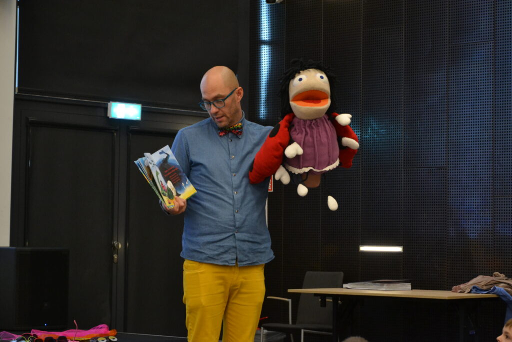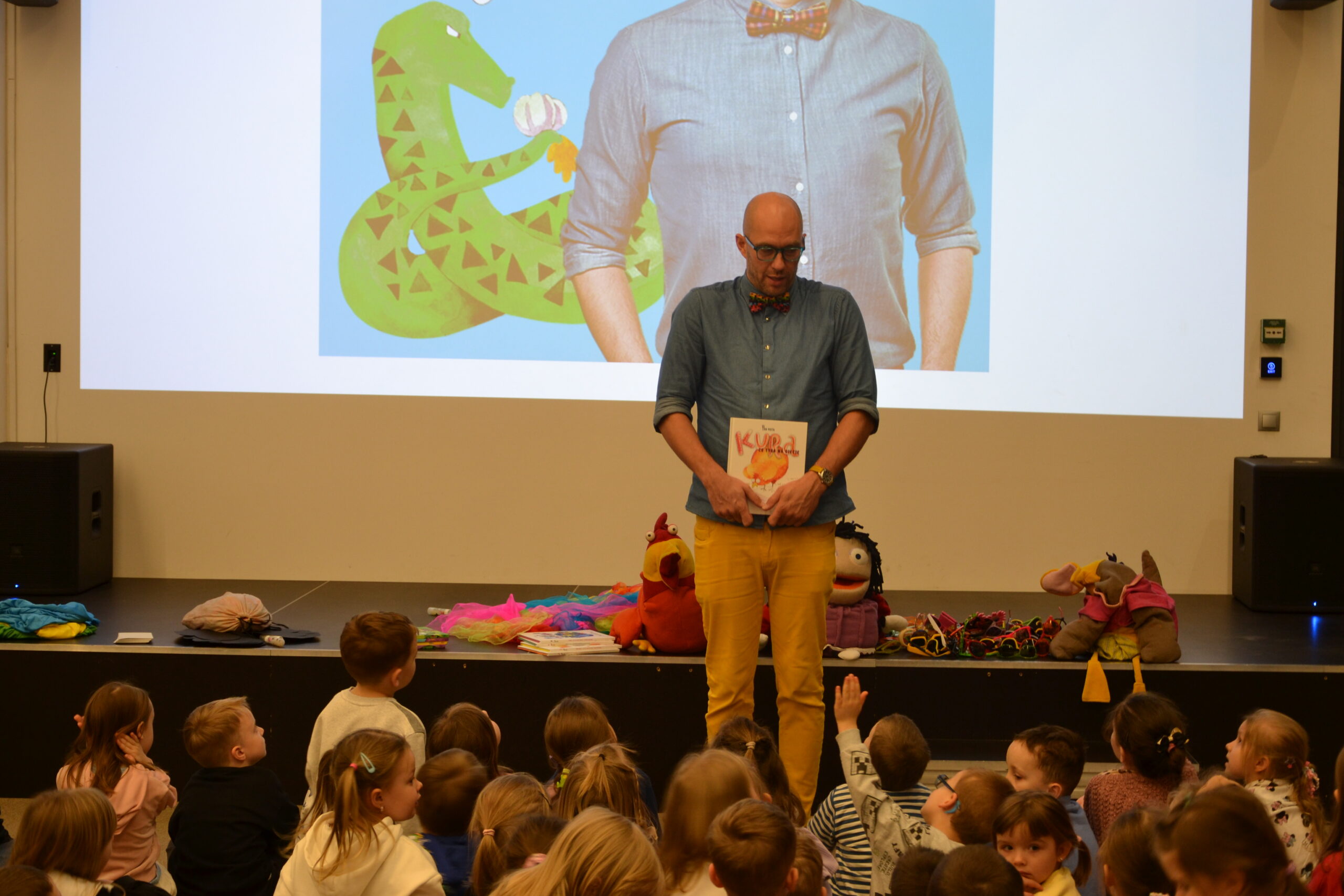 Autor nie tylko opowiadał o swoich utworach, ale także ożywił postacie dzięki pacynkom, angażując dzieci do wspólnej zabawy. Mali uczestnicy z ogromnym entuzjazmem brali udział w spotkaniu i chętnie odpowiadali na pytania. Było dużo śmiechu, ruchu i radości! 😀
