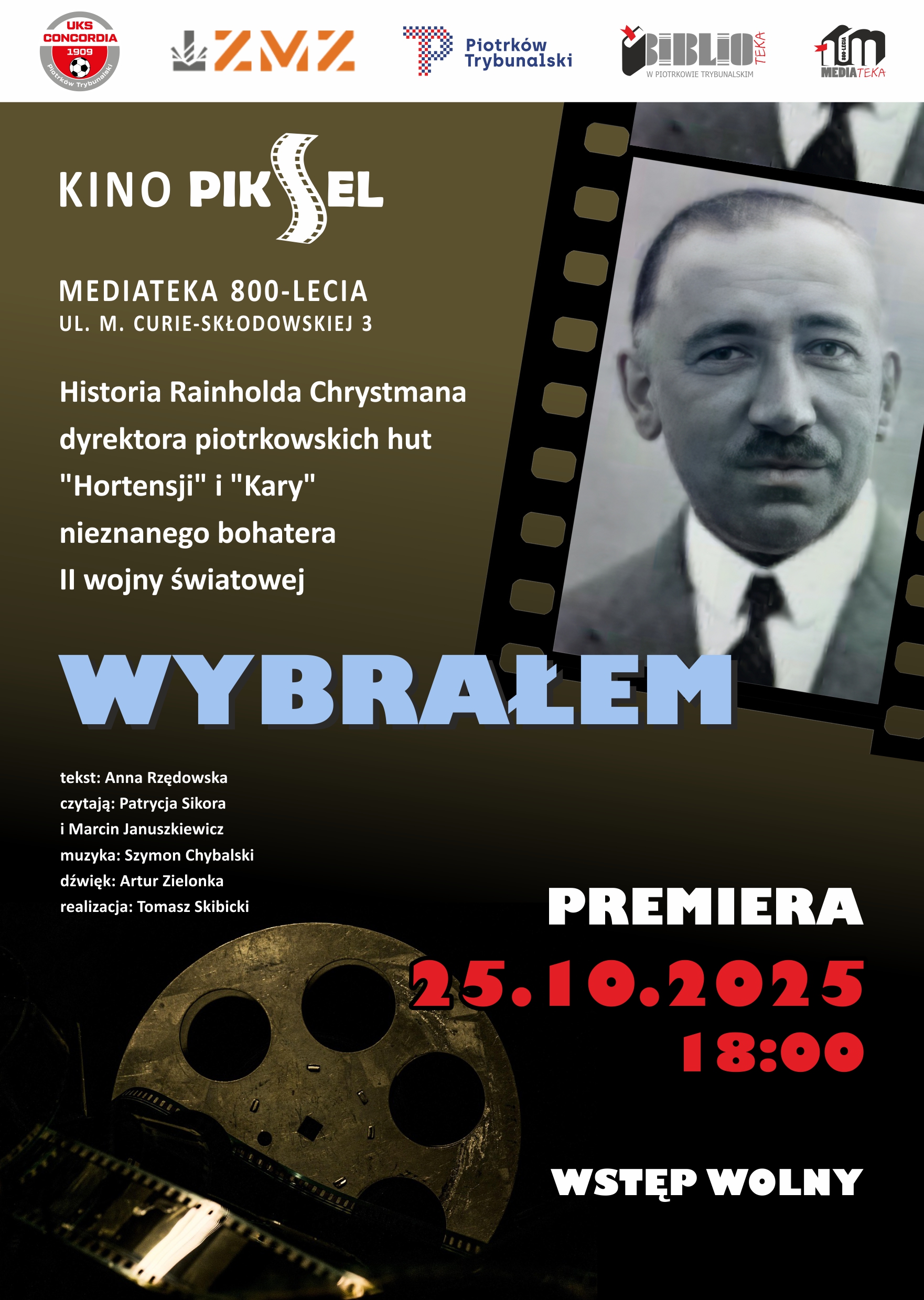 Zapraszamy na wyjątkowy pokaz poświęcony niezwykłej postaci — Rainholdowi Chrystmanowi, dyrektorowi piotrkowskich hut Hortensja i Kara, który w czasie II wojny światowej wykazał się odwagą i człowieczeństwem, pozostając jednym z nieznanych bohaterów tamtych czasów.