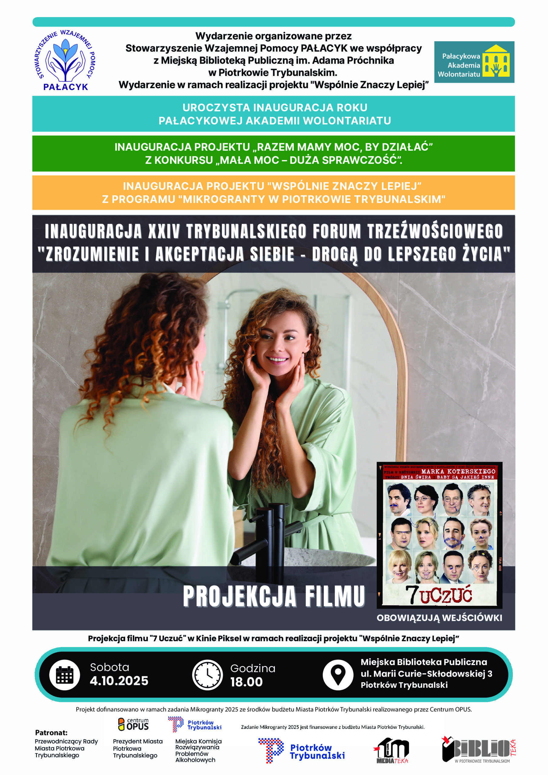 Stowarzyszenie PAŁACYK i Miejska Biblioteka Publiczna w Piotrkowie Trybunalskim zapraszają na inaugurację XXIV Trybunalskiego Forum Trzeźwościowego, która odbędzie się 4 października 2025 r. o godz. 18.00.