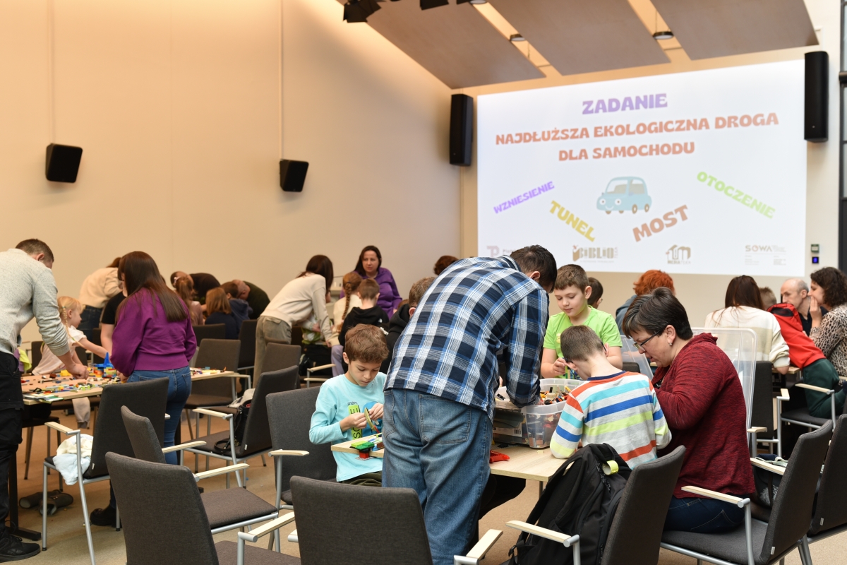Uczestnicy – zarówno mali, jak i duzi – zmierzyli się z kreatywnym wyzwaniem konstrukcyjnym, które łączyło elementy fizyki i ekologii.