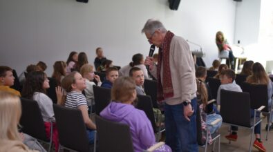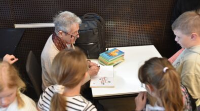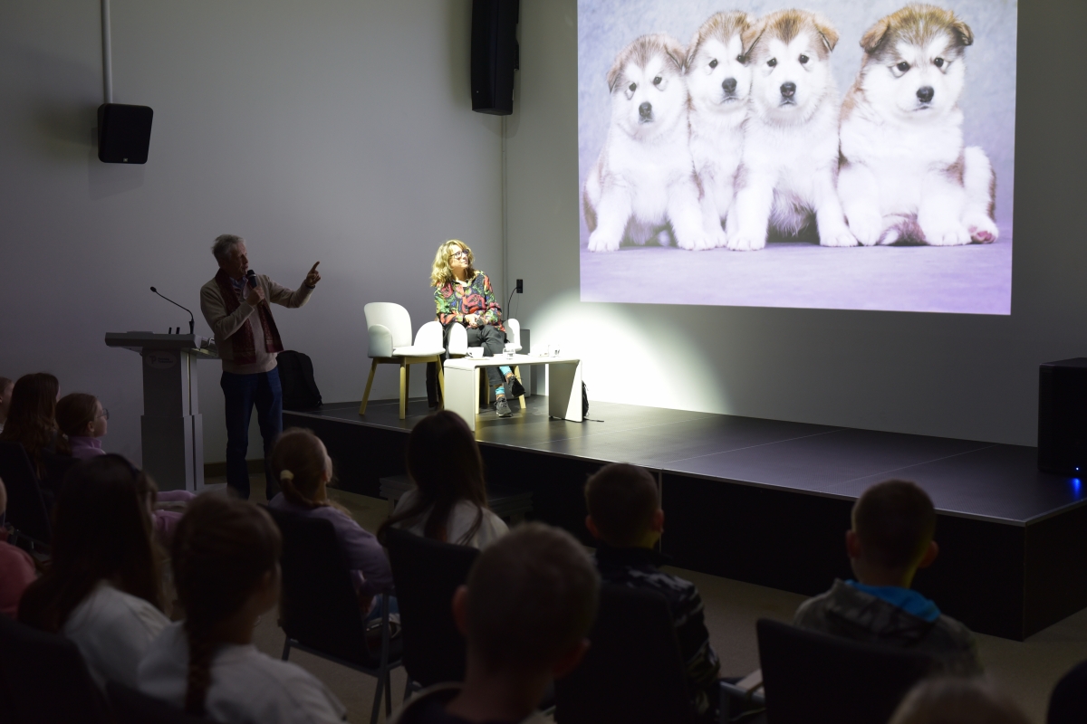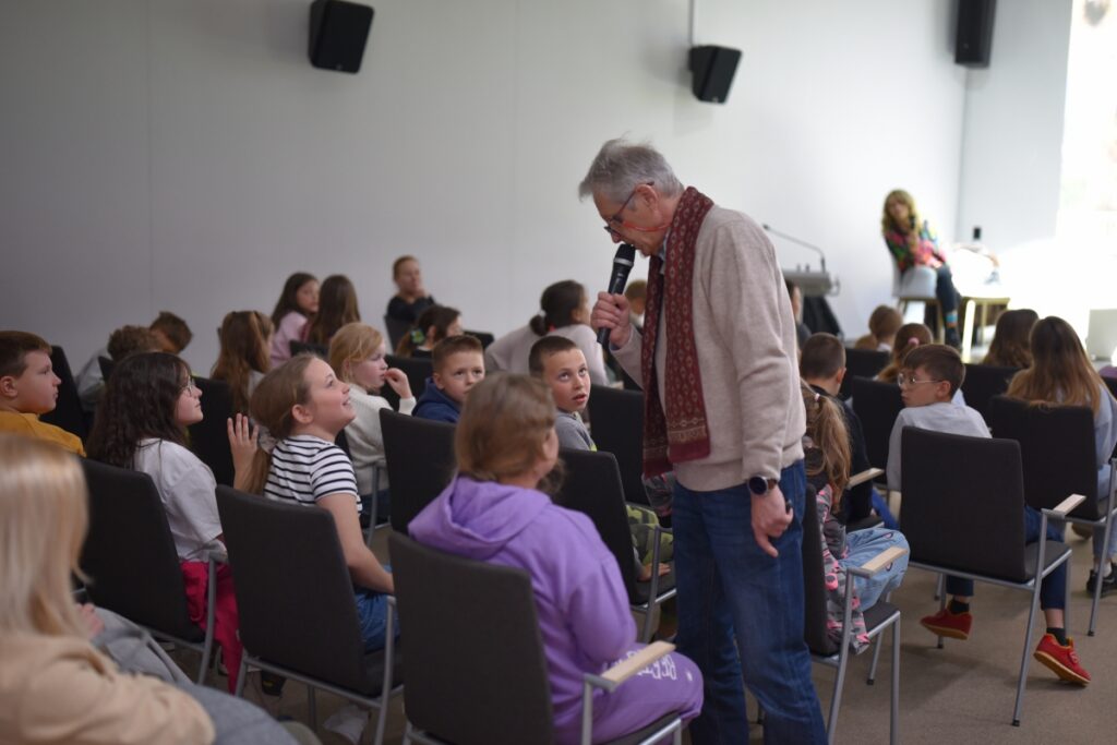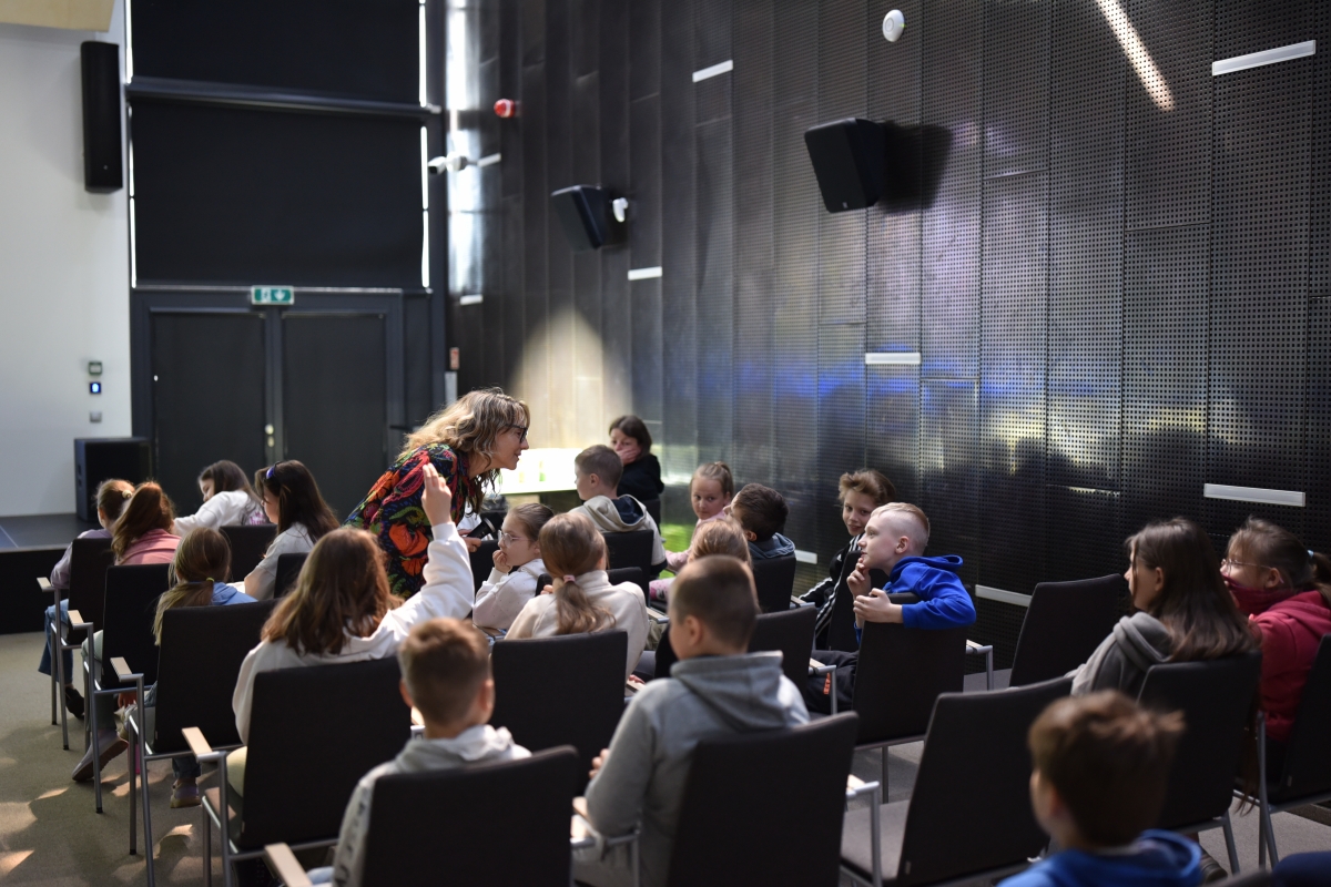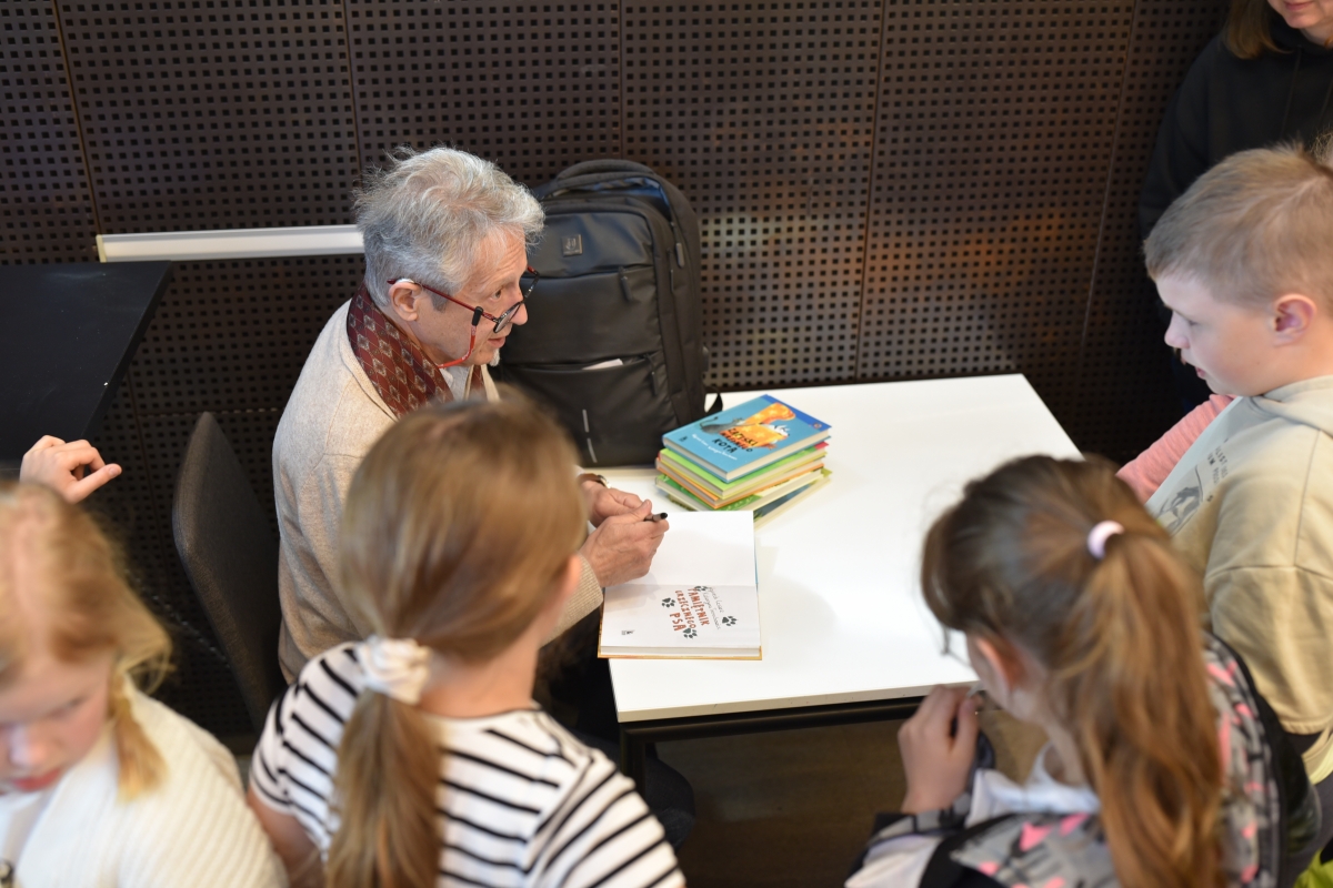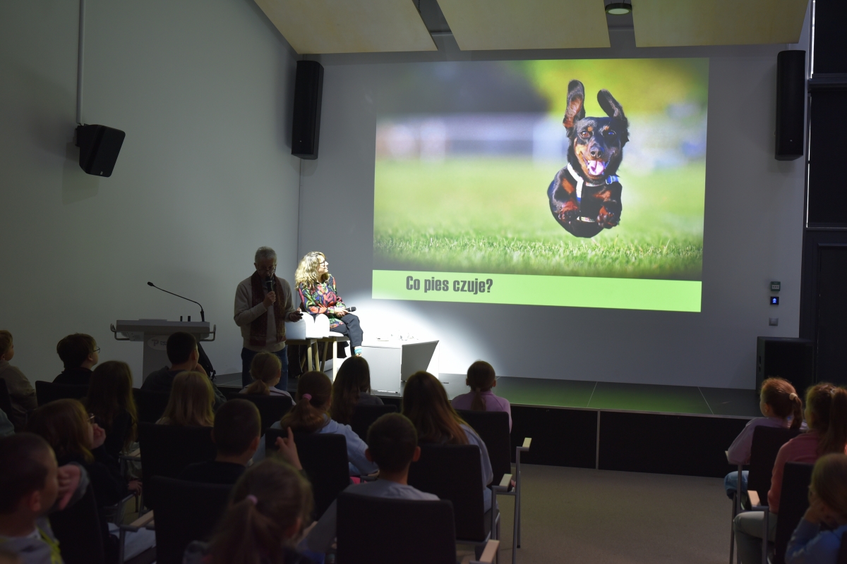 Dziś nasza biblioteka miała zaszczyt gościć autorów literatury dziecięcej – Wojciecha Cesarza i Katarzynę Terechowicz-Cesarz, znanych z serii książek o psie Winterze, m.in. „Pamiętnik grzecznego psa”. W spotkaniu uczestniczyli uczniowie klas I–III, którzy z ogromnym zainteresowaniem słuchali opowieści o psach – ich emocjach, zachowaniach oraz roli, jaką odgrywają w życiu człowieka. Dzieci miały okazję zadawać pytania, na które autorzy chętnie odpowiadali, a także wysłuchać fragmentu jednej z książek, przeczytanego przez panią Katarzynę. Istniała możliwość zakupu publikacji z autografami autorów.