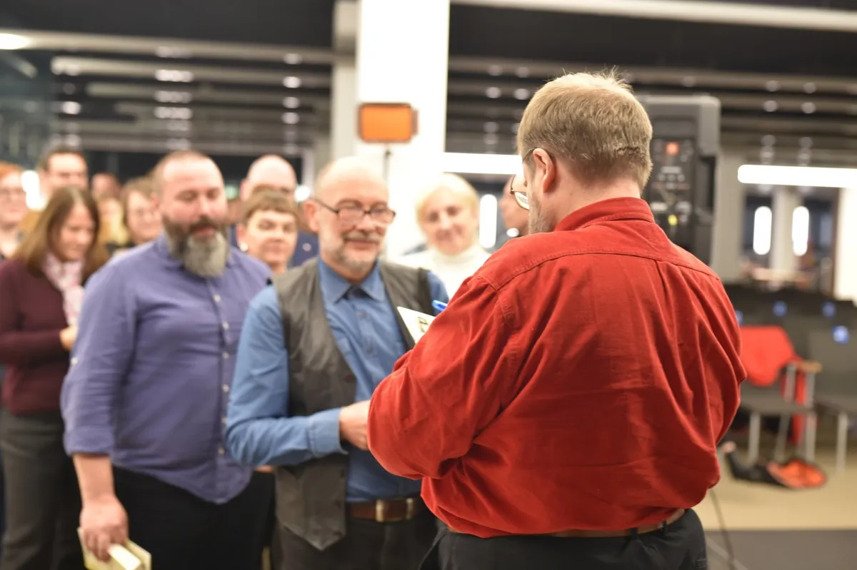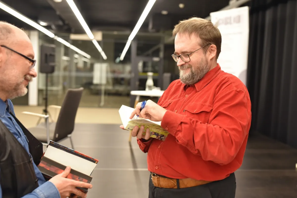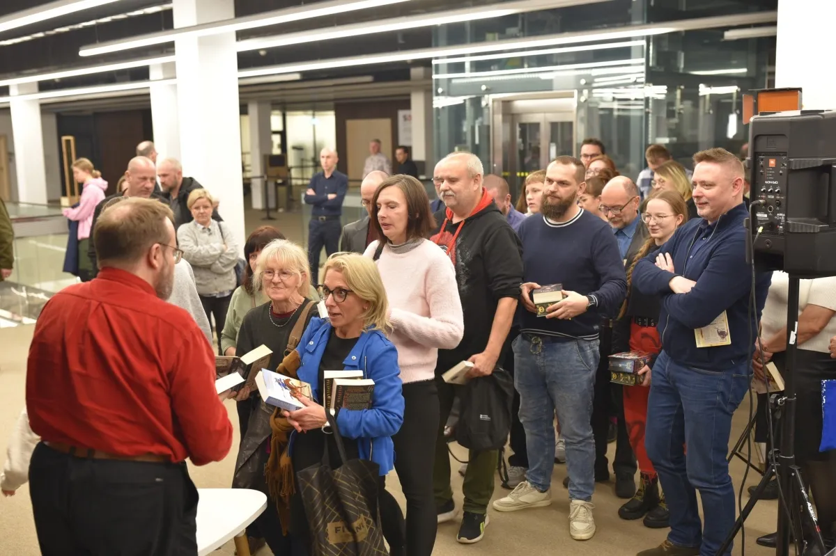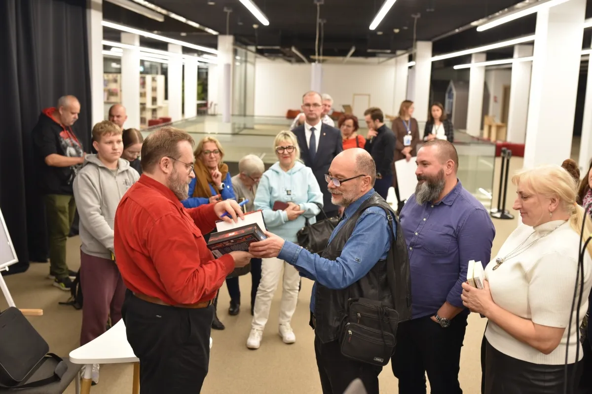 Dzisiaj Mediateka 800-lecia wypełniła się fanami twórczości Andrzeja Pilipiuka. Autor opowiadał o swojej pracy i podpisywał książki – kolejka po autograf mówiła sama za siebie. Książki można było kupić dzięki Księgarni „Oświata”.