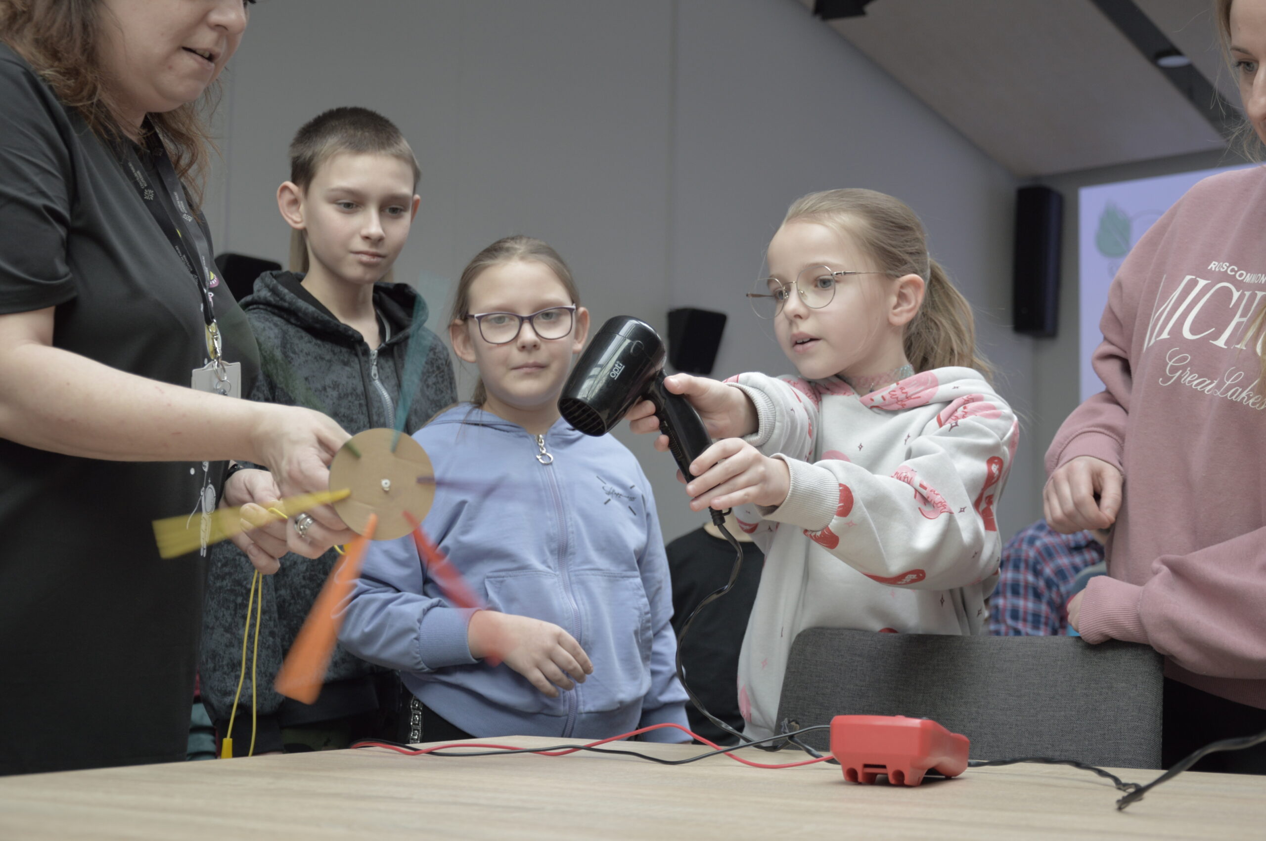 Dzisiaj obyły się kolejne warsztaty familijne. Tym razem tematem były odnawialne źródła energii i możliwość ich wykorzystania w codziennym życiu. Zajęcia pn. „Czysta energia” były okazją do samodzielnego tworzenia układów elektrycznych, zarówno tradycyjnych, jak i z wykorzystaniem ogniw fotowoltaicznych. Uczestnicy mogli wytworzyć energię z wykorzystaniem wiatraków, owoców i warzyw, jak i własnego wysiłku fizycznego. Na koniec wspólnie zaprojektowali rozwiązania dla ekologicznego miasta przyszłości.