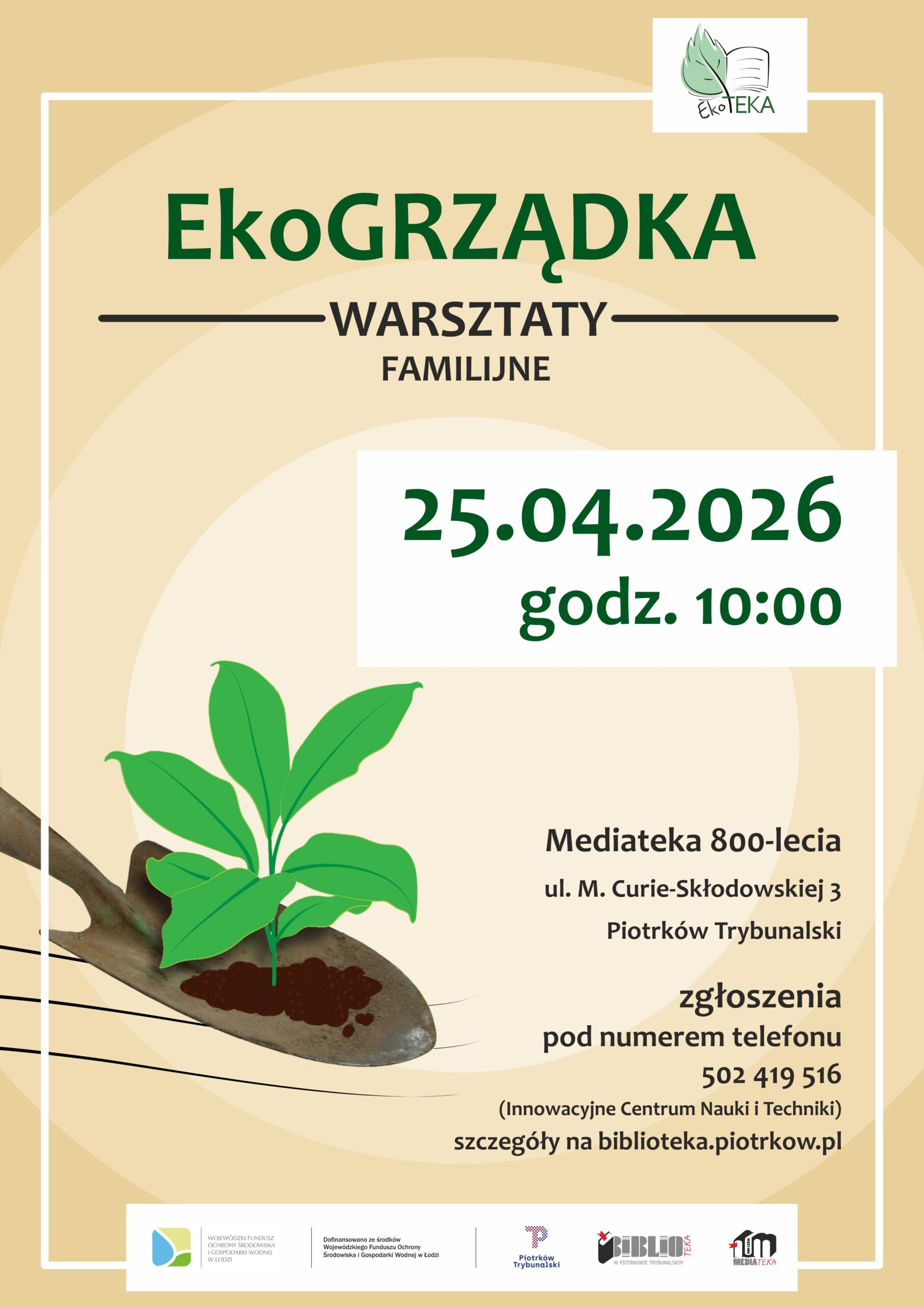 Warsztaty są elementem Zadania pn. „EkoTEKA – edukacja ekologiczna dla miasta Piotrkowa Trybunalskiego i regionu” i dofinansowane ze środków Wojewódzkiego Funduszu Ochrony Środowiska i Gospodarki Wodnej w Łodzi.