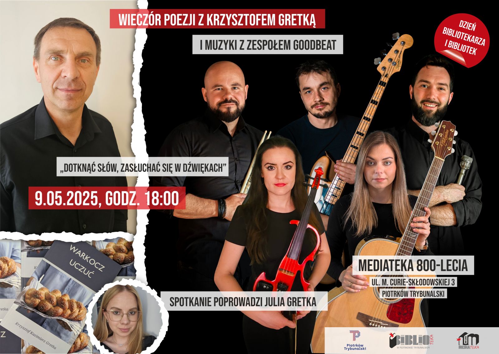 9 maja o godz. 18:00 zapraszamy na spotkanie autorskie z poetą Krzysztofem Gretką pt. „Dotknąć słów, zasłuchać się w dźwiękach” – wydarzenie, które połączy literacką wrażliwość z siłą muzyki.