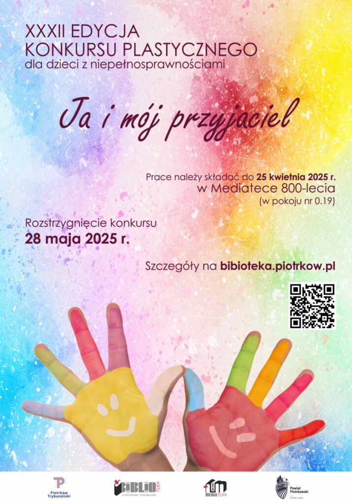 Miejska Biblioteka Publiczna w Piotrkowie Trybunalskim, Urząd Miasta Piotrkowa Trybunalskiego oraz Starostwo Powiatowu Piotrkowskiego zapraszają dzieci z niepełnosprawnościami z terenu Miasta Piotrkowa Trybunalskiego i powiatu piotrkowskiego do wzięcia udziału w XXXII Edycji Powiatowego Konkursu Plastycznego pt. „Ja i mój przyjaciel”.