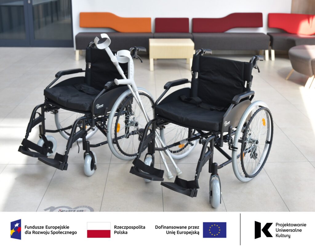 Zakupiliśmy dwa wózki inwalidzkie oraz dwie kule, aby jeszcze bardziej zwiększyć dostępność naszej przestrzeni.
