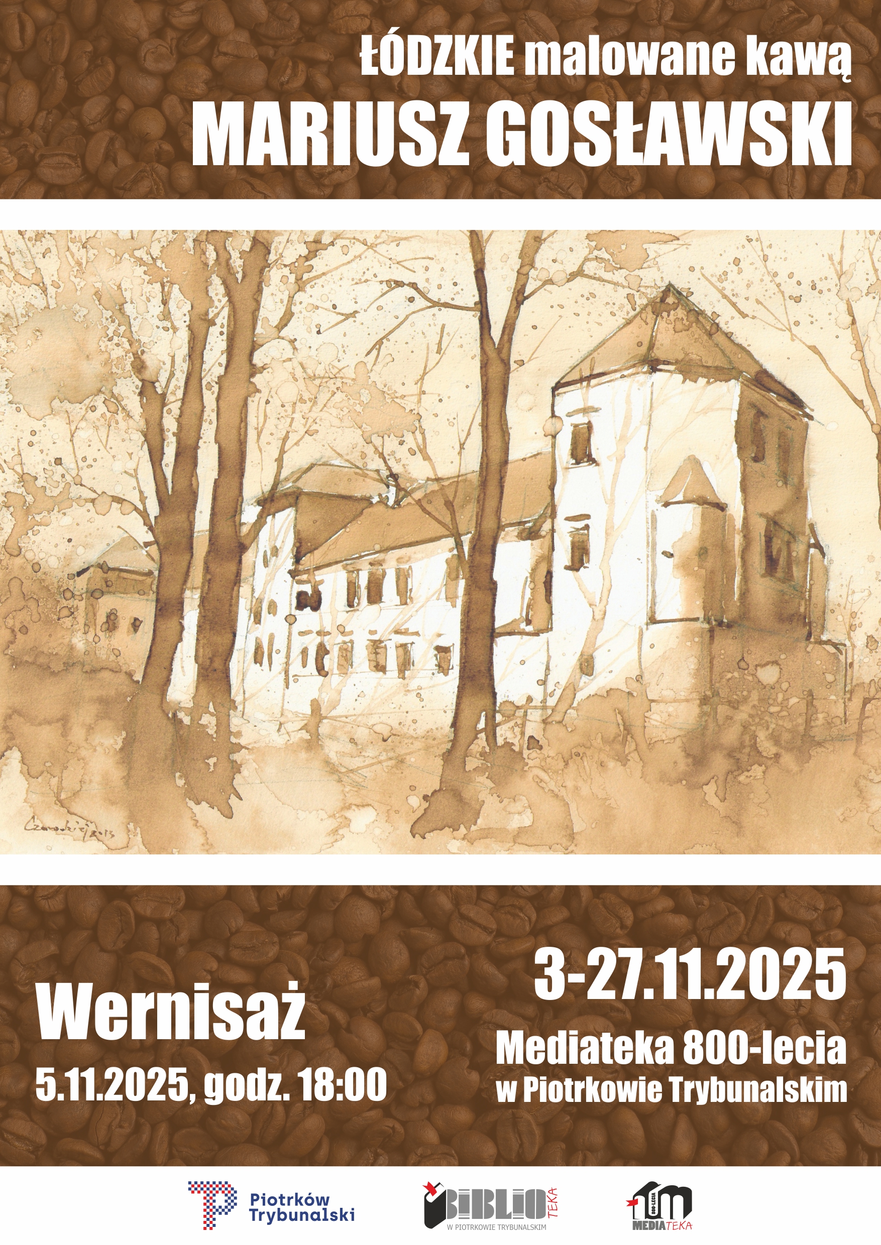 W środę, 5 listopada o godz. 18.00, zapraszamy do Mediateki 800-lecia na otwarcie wystawy prac Mariusza Gosławskiego, artysty znanego z techniki malowania kawą.